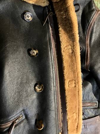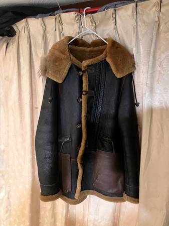 New bomber jacket attic cut. 100% leather, real fox fur. Official Airforce gear with double front close to keep the elements out. Designed by U. S. Airforce contractors to withstand below 0°. temperatures at 30,000 ft. with ease.