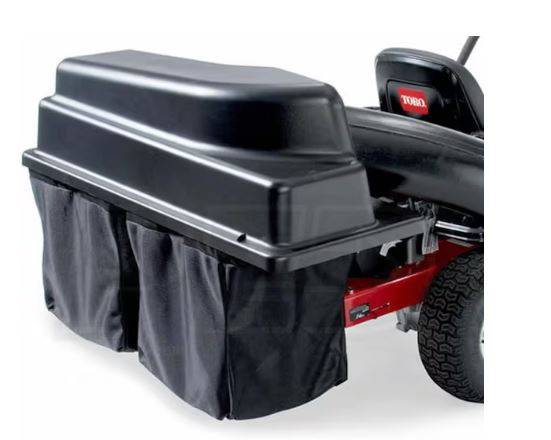 Older double bin leaf/grass bagger system. Used very little as switch to mulching & tractor belly mower.